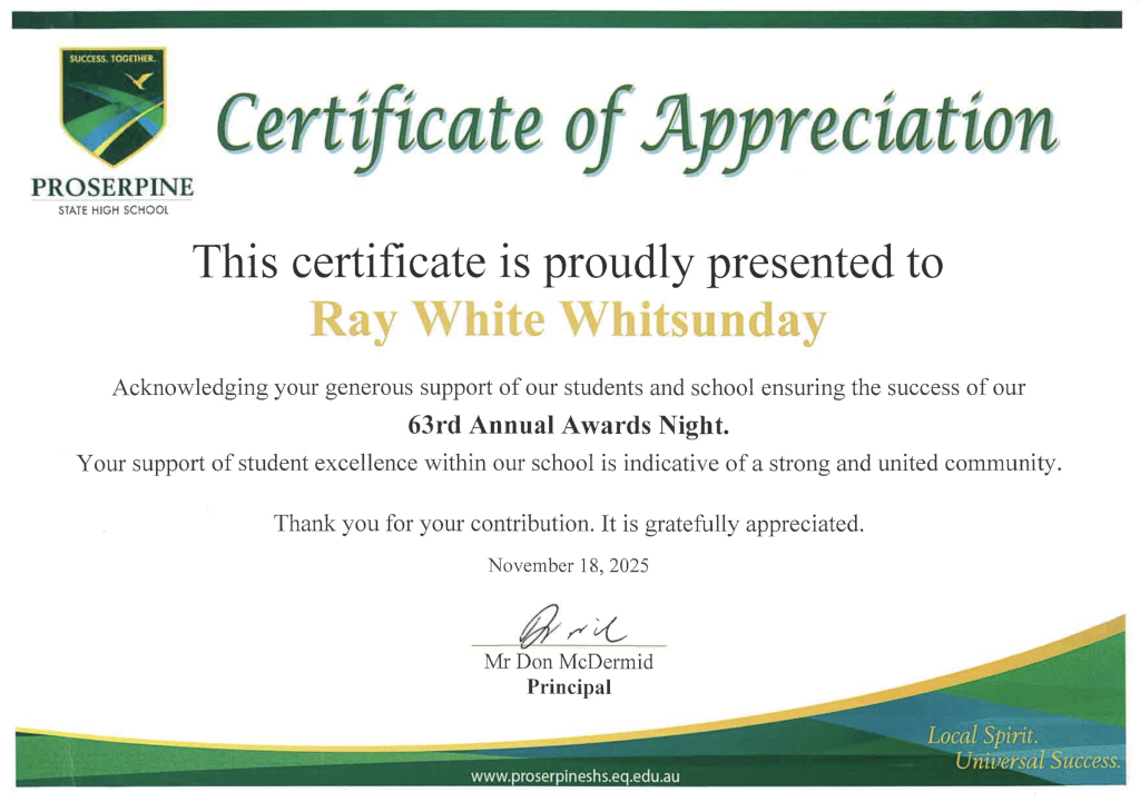 To find out more about our Community Support Program, please contact our office on +61 74948 8500 or via whitsunday.qld@raywhite.com