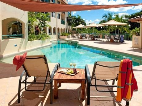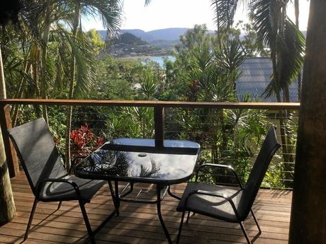 At the lower end of the price scale for $79 per night this two-bedroom Cannonvale apartment offers sea views, a fully equipped kitchen, spacious lounge area, separate bathroom and bedrooms, as well as private plunge pool and large deck.