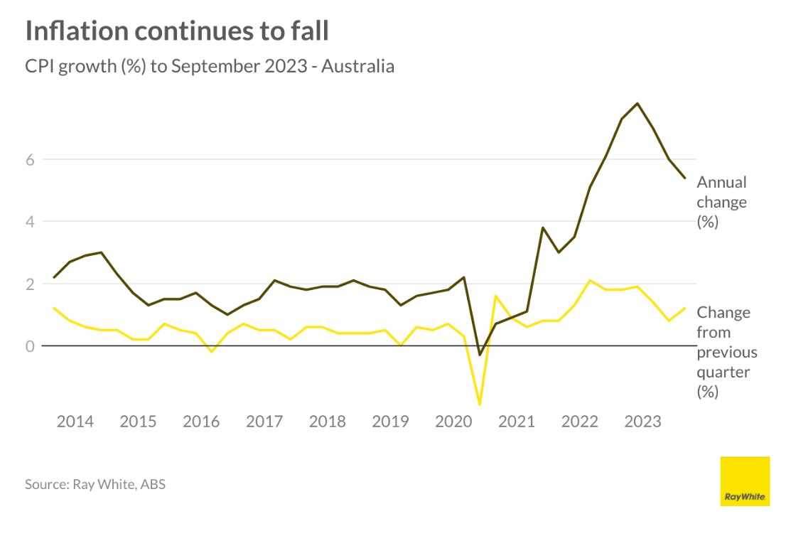 Inflation is still well above the 2-3 per cent band which the Reserve Bank aims for. We did see a reduction in inflation in the September quarter, reducing to 5.4 per cent, much lower than the peak reached in December 2022 at 7.8 per cent. The interest rate rise today was driven by the fact that inflation is coming down but is remaining too high and too sticky.