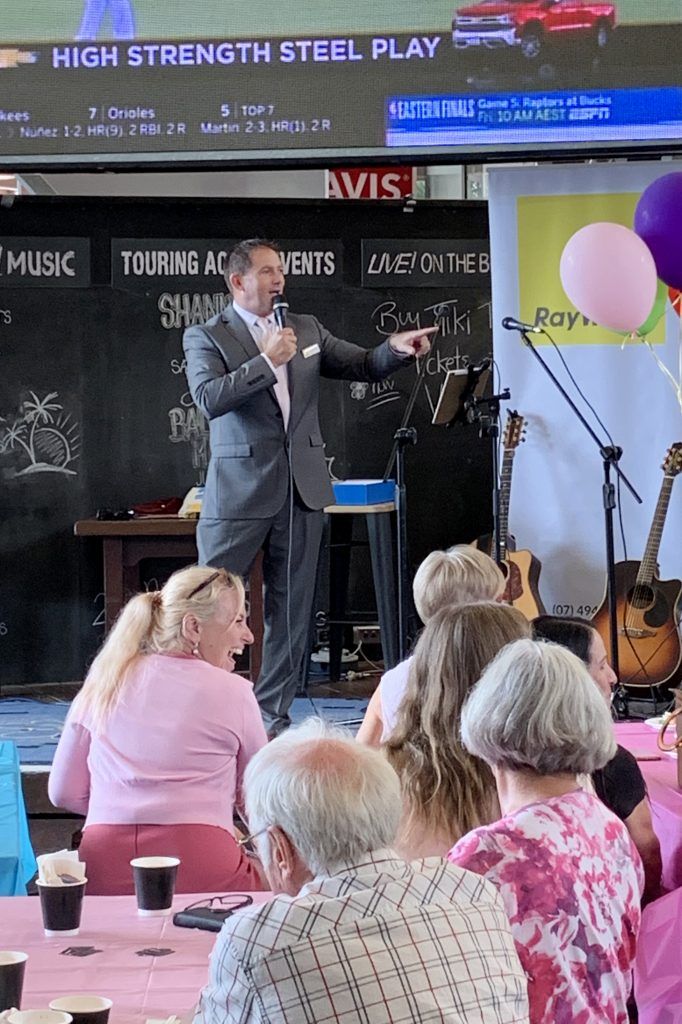 Our Ray White Whitsunday auctioneer Paul Skinner – Ray White put the “fun” into fundraising this week, auctioning off some great prizes recently at Magnums Backpackers – Airlie Beach Biggest Morning Tea. A really fantastic morning supported by many local volunteers and sponsors who assisted in raising funds of $1665 for cancer research.