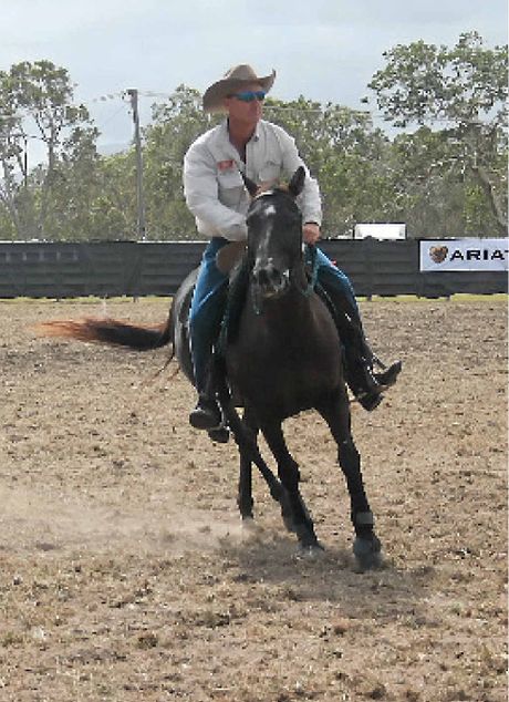 Proserpine’s Warren Watts had the arena in fits of laughter when he emerged dressed as a cow with his own blow-up horse.