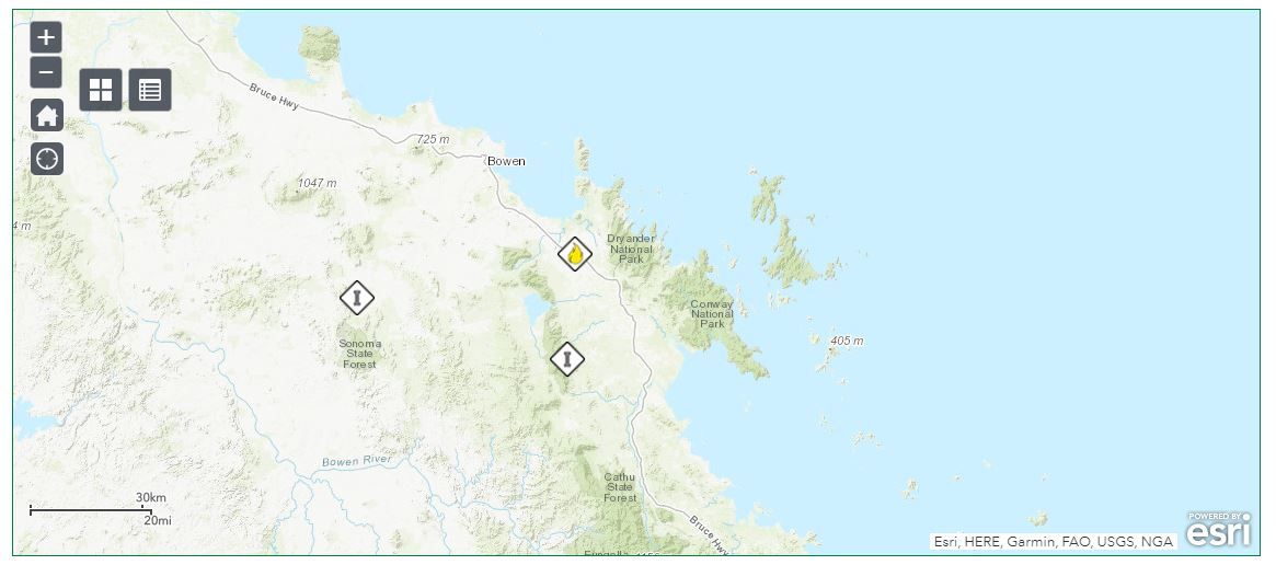 As you can see in the map below, there is no immediate fire threat in the Whitsunday area at the moment. CLICK HERE TO VIEW THE MAP OF CURRENT FIRES THROUGHOUT QLD or scroll down to see the photos from the recent Gregory River fire.