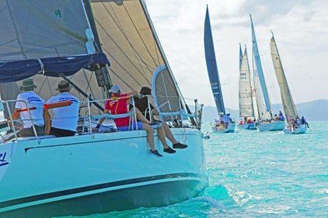 From the start line in Pioneer Bay the fleet makes it’s way to the windward mark and then around Double Cone Island and back to the Whitsunday Sailing Club.