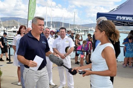 Tourism Whitsundays chairman Al Grundy speaking with the media at Abell Point Marina.