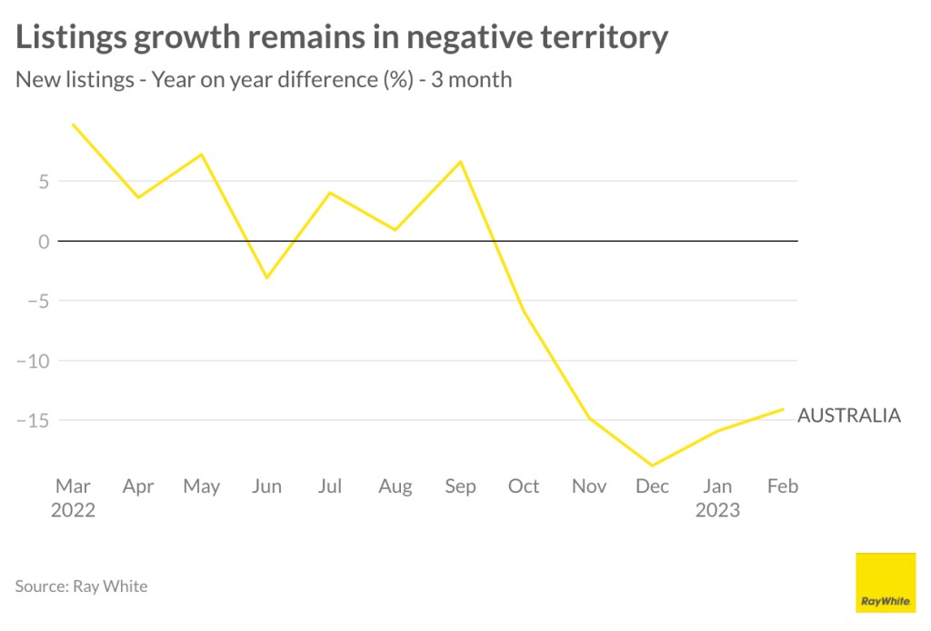 She said listings in the three months to February were down 14.1 per cent on the same period last year.