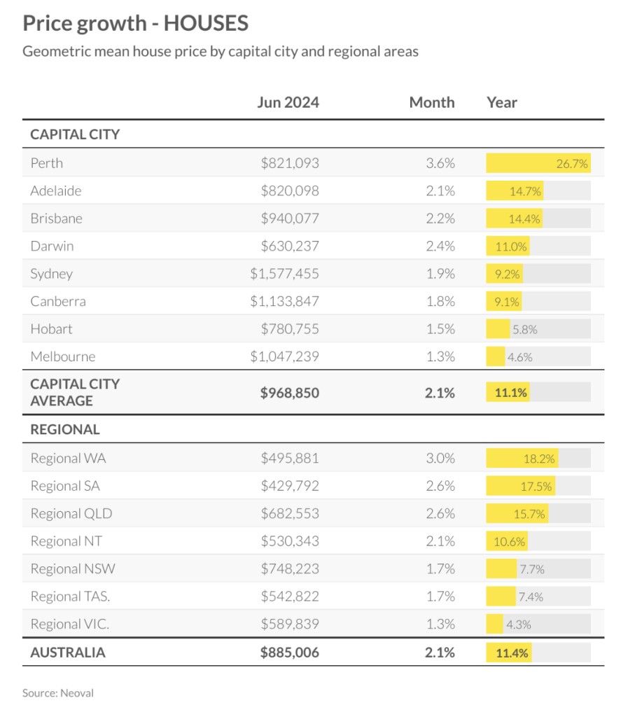 Adelaide and Brisbane maintain strong annual growth rates of 14.7 per cent and 14.4 per cent respectively, while Melbourne, though still growing, lags behind at 1.3 per cent monthly growth, below the national average of 2.1 per cent.
