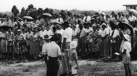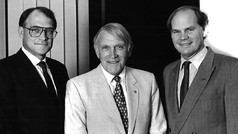 Ray’s grandson Brian White, now Joint Chairman and third generation leader of the Ray White Group can be seen sitting on Ray White’s knee as a child, with his father and Ray’s son Alan White standing.