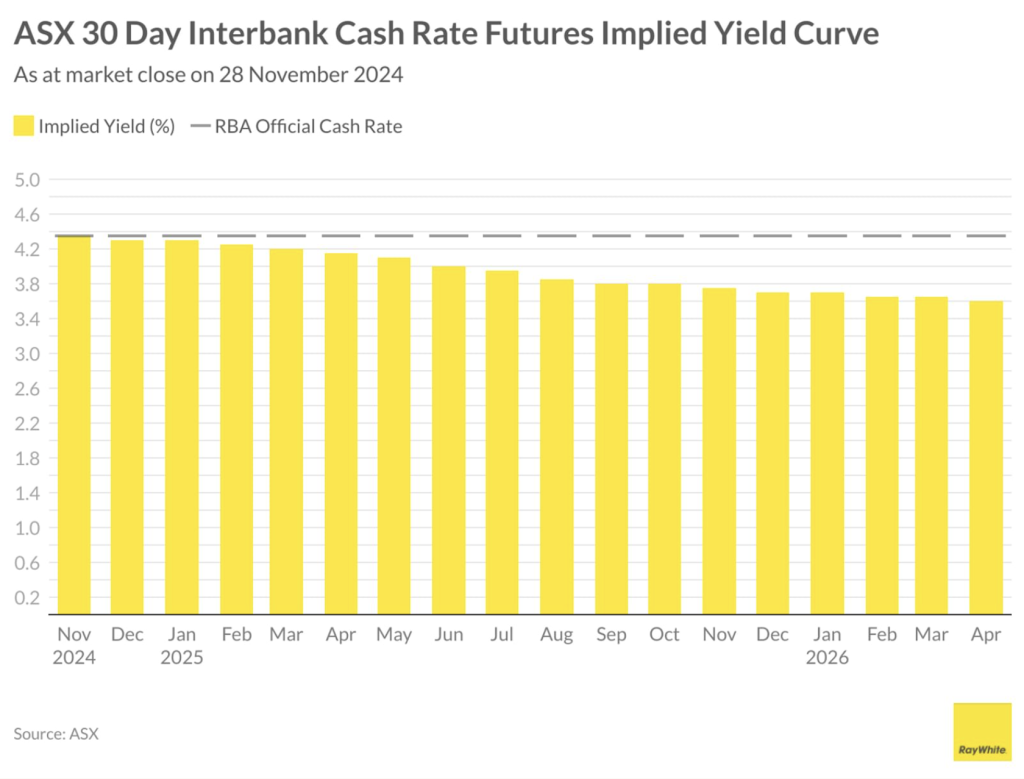 Up until a few weeks ago, markets were predicting four rate cuts for 2025. Now they are predicting two with the first to come in around May and the second in September. The main driver of this has been the election of Trump in the US and the potential for widespread economic challenges in the US, and by extension, for us.