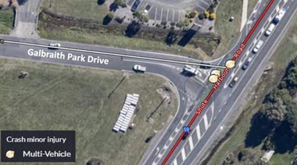 The intersection between Shute Harbour Rd and Galbraith Park Dr has been the site of three hospitalisations as the result of traffic incidents. Picture: Traffic Impact Assessment submitted to Whitsunday Regional Council