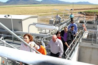 Ms Trad toured the water treatment plant in Up River before announcing the expenditure.