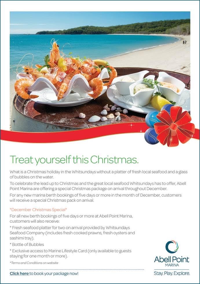 To celebrate the lead up to Christmas and the great local seafood Whitsundays has to offer, Abell Point Marina are offering a special Christmas package on arrival throughout December.