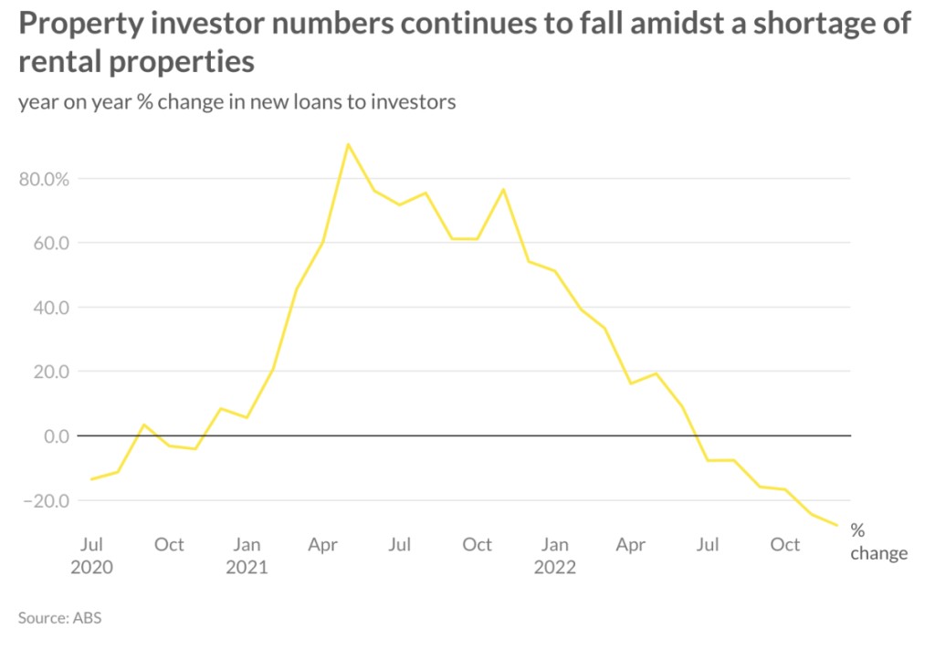 The total number of new loans to investors has now fallen by 30 per cent from the peak in March 2022 and the rate of decline will continue.