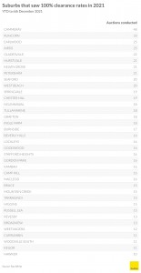 These are the suburbs with a 100 per cent clearance rate in 2021
