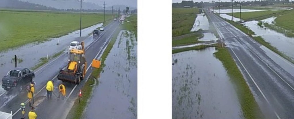 Whitsunday Regional Council flood cams captured a council team doing emergency repairs to Shute Harbour Rd at Hamilton Plains after heavy rain and flooding caused potholes.